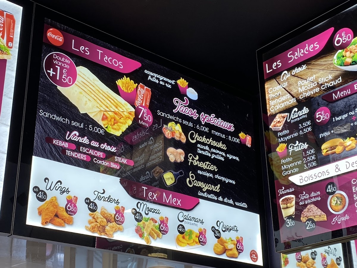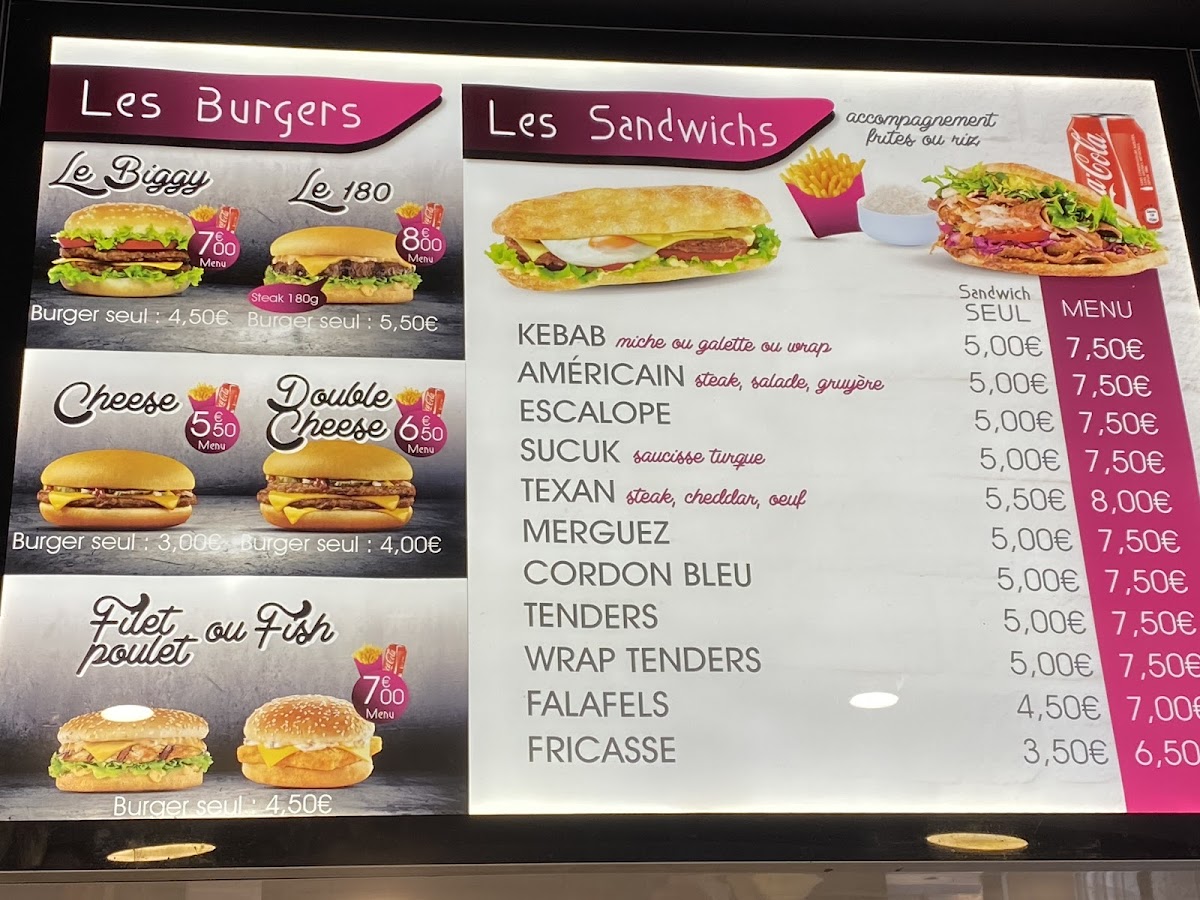 One of the highlights of this establishment is their Menu Burgers, featuring options like Filet Poulet and Filet Fish, all served with a side of fries. The Tex Mex menu also stands out, with items like Mozza X 6 sure to satisfy any cheese lover.